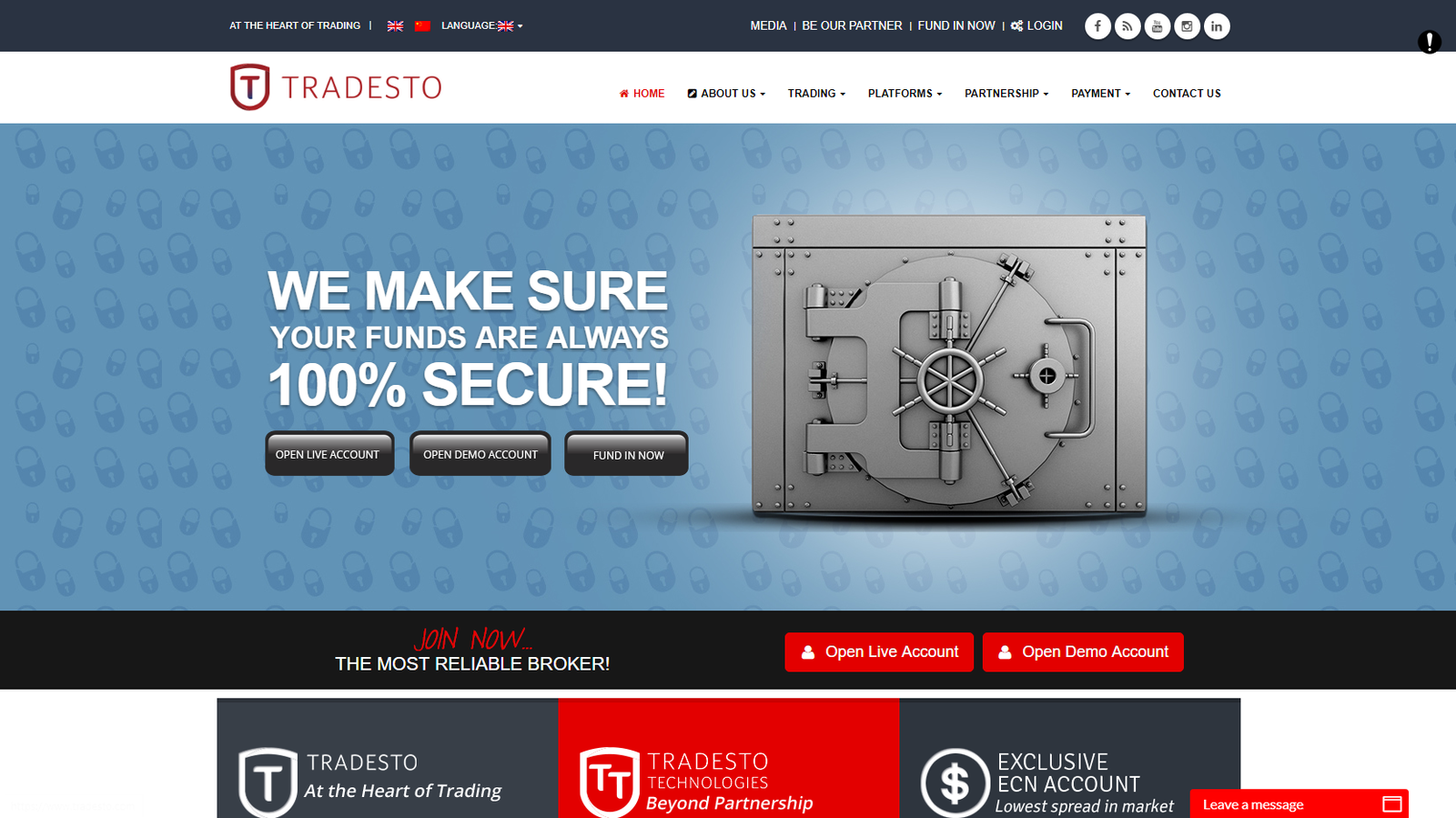 On-line since: Tradesto is a relatively new broker based in Saint Vincent and the Grenadines. The company`s website states that its founder organizations have sixty years of experience in trade, investment, technology, and finance. The company has an office in the UK. Tradesto is regulated by the FCA (Saint Vincent and the Grenadines), VFSC (Vanuatu), and ASIC (Australia). Trading conditions Tradesto clients have access to 50 currency pairs, as well as several types of CFDs. Traders can open the following account types: standard, Islamic, joint, corporate, ECN, and MAM. The leverage level is up to 1:500. Spreads are floating. At the same time, the broker charges a commission ofs about $10 per lot (or $1 for a mini-lot). To start working with Tradesto, you just need to top up your trading account with at least $100. The company uses the popular MetaTrader4 platform for trading. Special offers and bonuses We did not find any information about current promotions and bonuses on the broker`s website. Training On the company`s website, there is a section on how to start working with the broker (How To Start?). It features a fairly detailed instruction for beginners. There are also financial news, an economic calendar, daily video reviews, as well as a FAQ section. Besides, traders have the opportunity to try their hand at trading using a demo account. However, in order to activate it, it is necessary to specify all personal details. Support service Investors can contact the support service by phone or through a feedback form on the broker`s website. In the latter case, an answer is set to be provided within one working day. The customer service is available in English, Chinese, Vietnamese, Thai, and Malay. The broker has profiles in almost all popular social media platforms. Deposit and withdrawal of funds Tradesto has a section on its website which covers the ways to deposit and withdraw funds. In addition, the information on the approximate duration of operations for each of the methods is specified. The most commonly used methods are bank transfers and credit/debit cards. Besides, traders can use e-wallets such as Neteller, FasaPay, etc. Feedback from traders Most traders cooperating with Tradesto complain about a limited number of deposit and withdrawal methods, as well as a small set of financial instruments. Advantages and disadvantages A relatively low initial deposit, a wide range of account types, a demo account, as well as the fact the broker is regulated can be seen as advantages. The disadvantages of Tradesto include high commissions, the lack of bonuses, and rather complicated ways of contacting the support team. The opinion of the review`s author is private and not obligated to reflect the position of the resource. If you have any remarks and suggestions on new articles please contact us via this form.